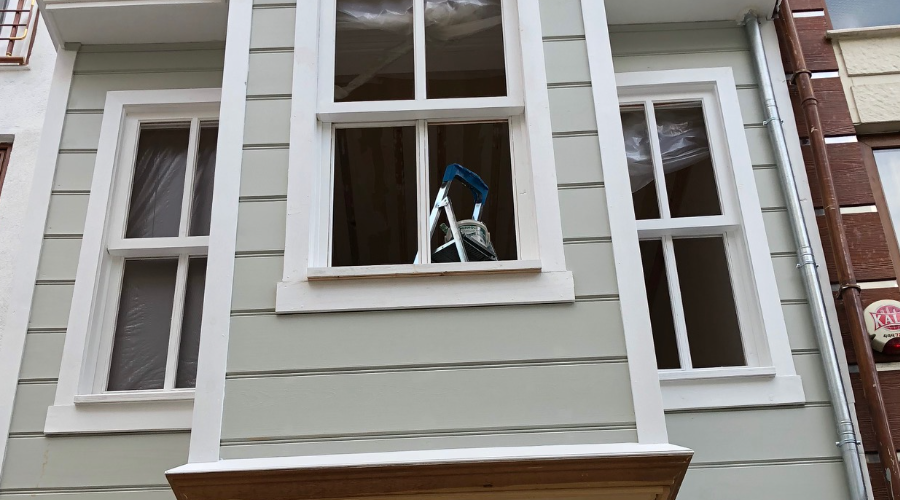 Beşiktaş, Mecidiye Mahallesinde bulunan Tescilli Sivil Mimari Eser yapı ön cephesi askıya alındıktan sonra harap halde bulunan kısımları Anıtlar Kurulu görüşüyle restore edilmek üzere yıkılmıştır. Statik projeye göre betonarme olan kuyu perde ve temel imalatları yapılmış olup, zemin kat ve üzeri ahşap konstrüksiyon ile yapılıp restore edilmiştir.